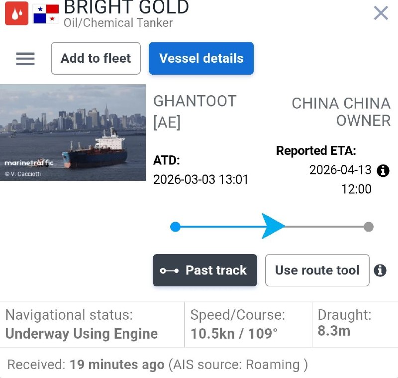 است. اطلاعات ثبت شده نشان میدهد مالکیت و مقصد این شناور مرتبط با چین است و