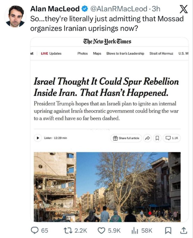 🔸الن مک‌لیاد، خبرنگار و پادکستر بریتانیایی با اشاره به مقاله‌ی نیویورک‌تایمز: