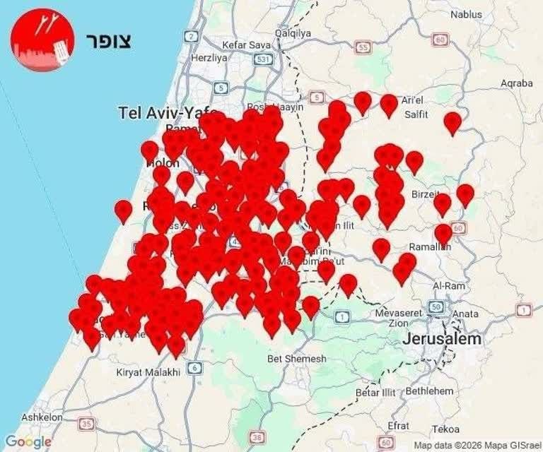 روشن شدن آژیرها در تلآویو و بیت یام؛ ۲.۶ میلیون نفر در سرزمینهای اشغالی به پناهگاه میروند Posted on مارس 26, 2026 🔸روشن شدن آژیرها در تلآویو، بیت یام و ۲۰۰ نقطه دیگر از مرکز سرزمینهای اشغالی 🔹طبق برآوردهای جمعیتی، به دنبال این موج موشکی ایران، هماکنون ۲ میلیون و ۶۸۸ هزار اشغالگر باید به پناهگاه بروند.