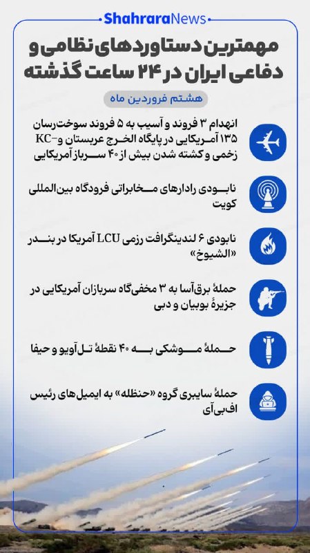 مهمترین دستاوردهای نظامی و دفاعی ایران در ۲۴ ساعت گذشته: تازهترین تحولات و موفقیتها Posted on مارس 28, 2026 🔸مهمترین دستاوردهای نظامی و دفاعی ایران در ۲۴ ساعت گذشته