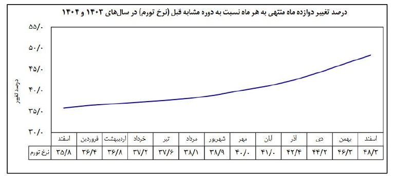 نسبت به دوازده ماه منتهي به اسفندماه ۱۴۰۳ (نرخ تورم سال ۱۴۰۴) معادل ۴۸/۳ درصد