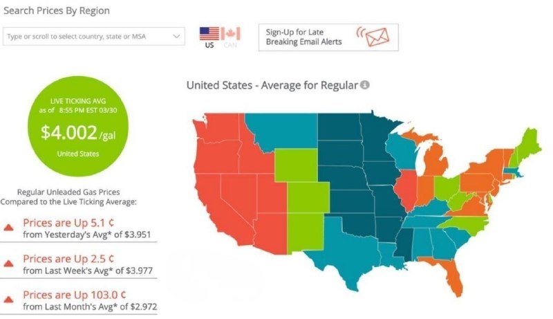 قیمت بنزین در آمریکا برای اولین بار از آگوست ۲۰۲۲ از ۴ دلار عبور کرد | تحلیل داده‌های GasBuddy