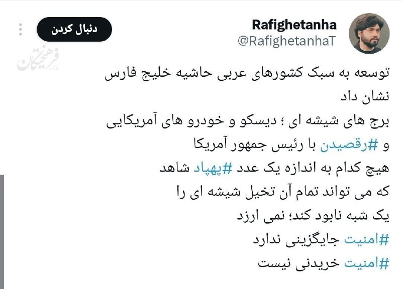 🔸 توسعه به سبک کشورهای عربی حاشیه خلیج فارس نشان داد: برجهای شیشهای، دیسکو و