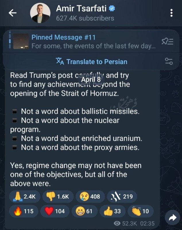 🔹 یکی از روزنامهنگاران اسرائیلی که همیشه خاکسار ترامپ بود، امشب و پس از موضع