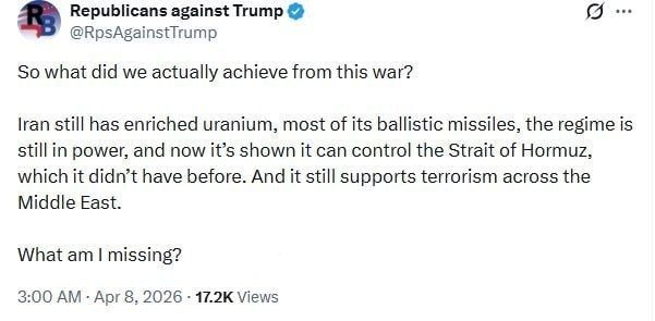 🔹 انتقاد اکانت معروف جمهوری‌خواه به آتش بس ترامپ با ایران: