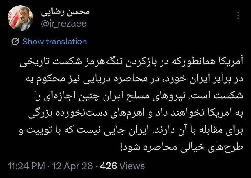 🔸محسن رضایی: ایران جایی نیست که با توییت و طرحهای خیالی محاصره شود
