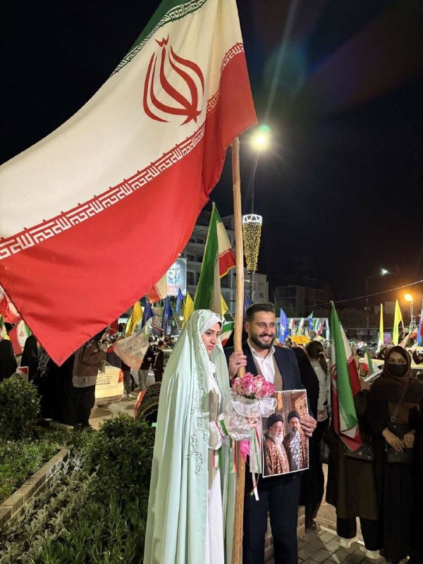 🔸عروس و داماد مشهدی با پرچم معروف ایران در بلوار احمدآباد عکس گرفتند